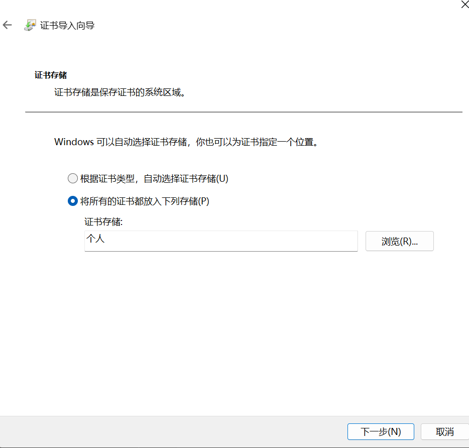 下一步,点击浏览,选择在你桌面上的那个证书文件