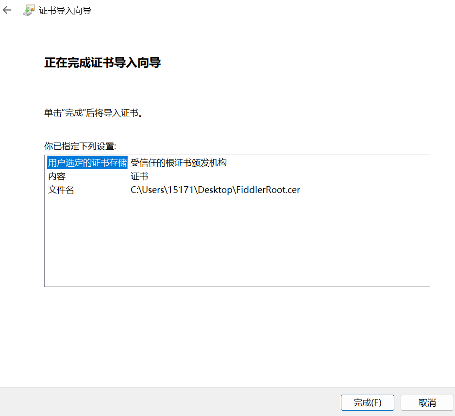 继续下一步,到这里点击完成就会导入证书了,然后就可以抓包HTTPS了