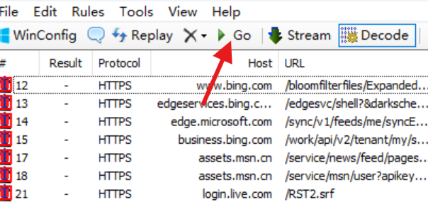 解决这个问题的办法就是开启Fiddler的自动解码功能,这里点击一下功能栏的Decode就可以了